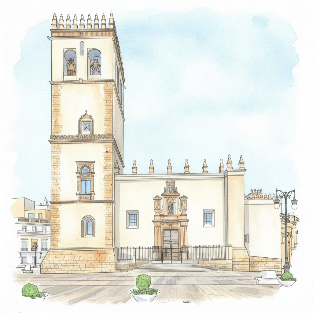 Si te fijas, la Catedral solo tiene una torre. Aunque los planos originales solÃan incluir dos, la falta de presupuesto y las constantes guerras con Portugal hicieron que se quedara «mancu» (como decimos aquÃ). Eso sÃ, con sus 41 metros de altura y sus muros de hasta 3 metros de espesor, ¡se basta ella sola para vigilar toda la ciudad!